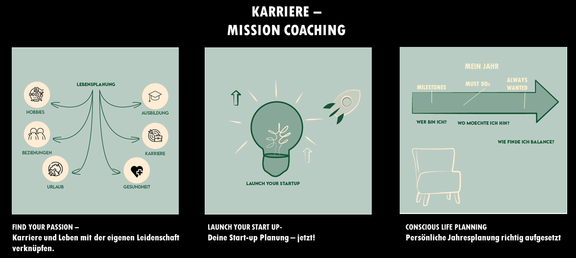Neben einem einzelnen Coaching Tool kann auch eine Kombination verschiedenen Methoden zu einem umfassenden Thema wie Startup Beratung oder Karriereweiterentwicklung gebucht werden.